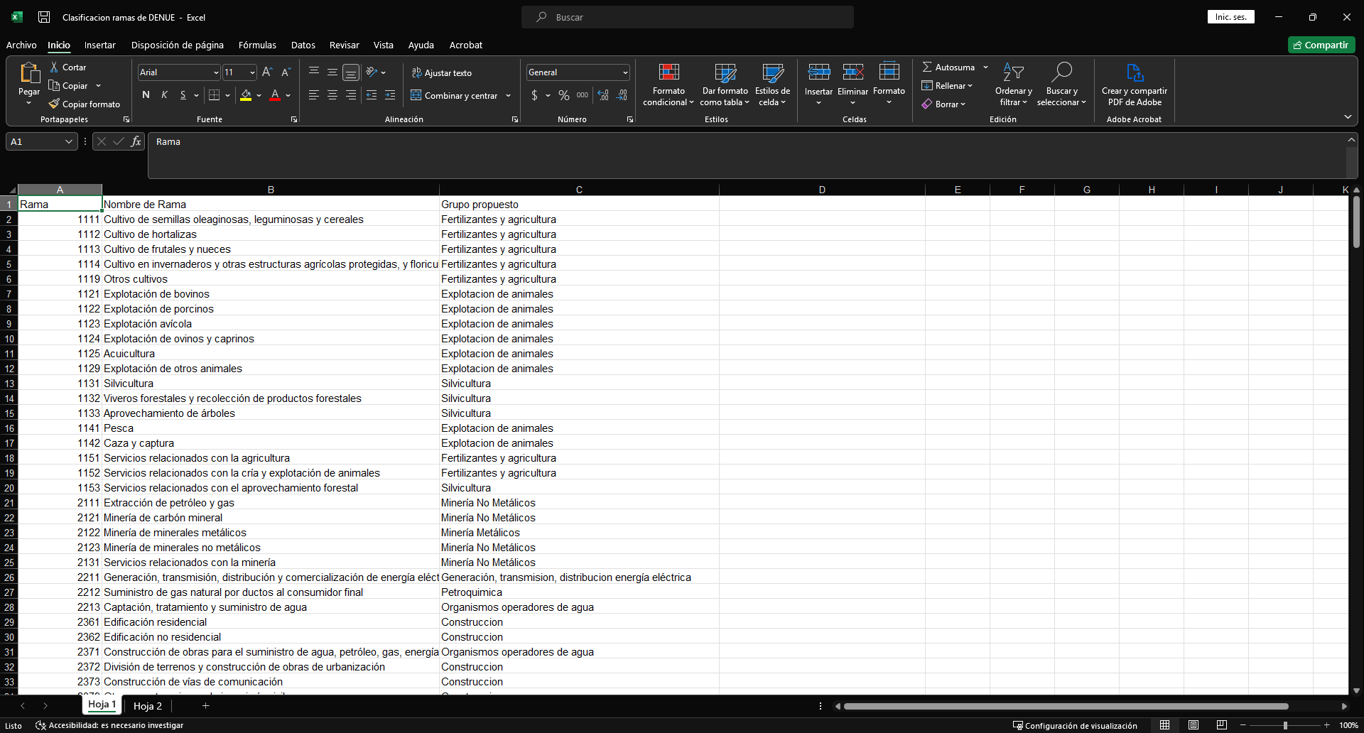 Para este apartado se necesita el archivo Clasificación ramas de DENUE.xlsx.